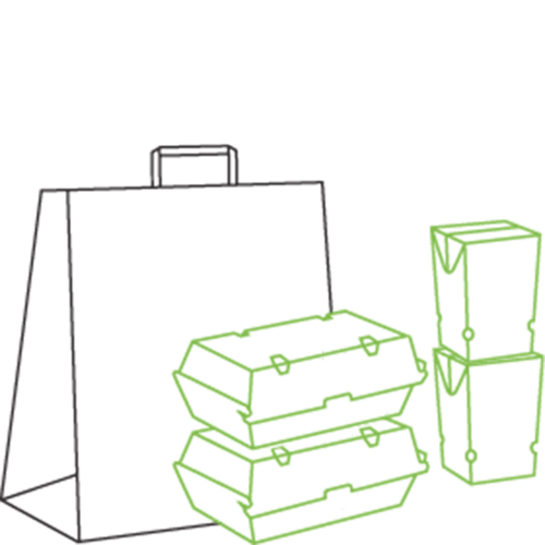Flat handle paper bags are strong and sturdy, and stand upright on counters for easy loading. Paper bags are recyclable, compostable and reusable. Recyclable Home Compostable Commercially Compostable