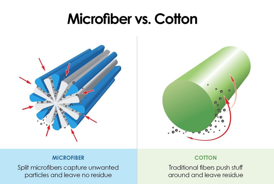 Microfibre clothes are Blue, allowing you to colour code cleaning supplies