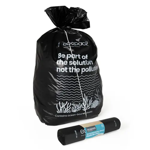 60L XL Ocean-Bound Recycled Plastic Bin Liners (Black) Roll (30 Bags) - Ecopack