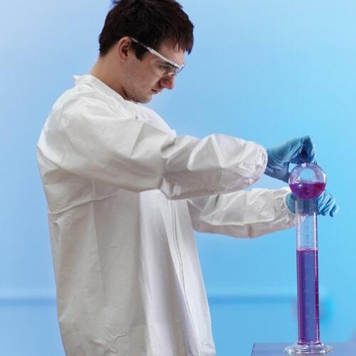 AlphaTec Lab Coat is made from AlphaTec 2000 Standard material with bounded seams for added protection and strength.