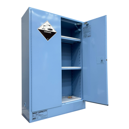 Suitable for storage of class 8 corrosive substances in liquid or solid form including acids, alkalis, caustics, sodium hydroxide solutions and hypochlorite solution.