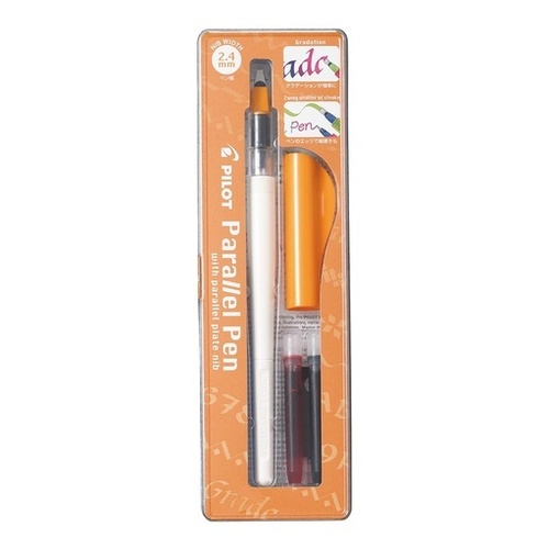 The Pilot Parallel Pen features two parallel plates on the nib point for beautiful, sharper lines. It can produce attractive, graduated colours by transferring ink from one pen nib to another. Packaged with 2x ink cartridges (black and red), ink converter and nib cleaner. 2.4mm nib. Purchase 12 to receive a box.